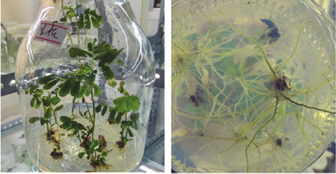 圖1 添加IBA 0.5 mg·L-1的誘導(dǎo)苗長勢及生根(25 d)