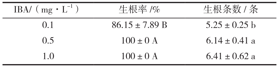 表3 IBA濃度對(duì)樹(shù)莓“Polana”生根的影響