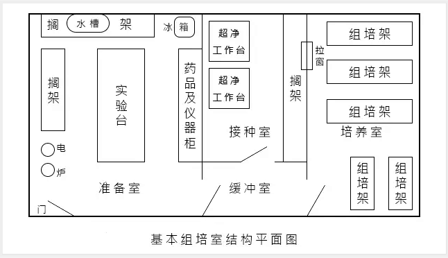 組培基礎(chǔ)實驗室應(yīng)包括準(zhǔn)備室、清洗消毒室、無菌手術(shù)室(接種室)、培養(yǎng)室、緩沖室和馴化室。當(dāng)然,根據(jù)實際情況,有些分房可能會合并或不合并。那么,在規(guī)劃和設(shè)計組培實驗時,除了考慮規(guī)模和戶外,還有什么是需要注意的呢?