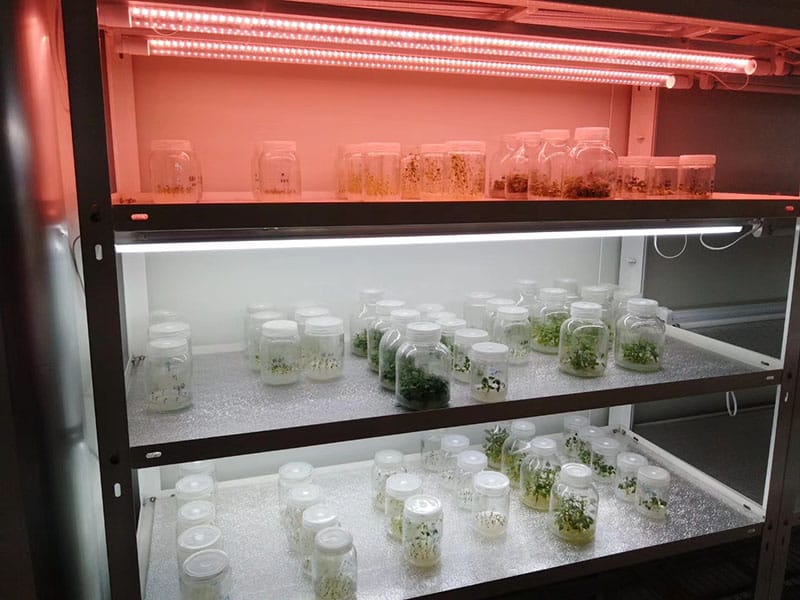 | 組培架(鋁箔反光板式) | HT-I-L | 1.25×0.5×1.8m,實(shí)用 5 層,精致烤漆;插孔暗式布線,每層配專(zhuān)用廣譜燈一套,光照強(qiáng)度3000lux、光照獨(dú)立控制,節(jié)能;層板為鋁箔發(fā)光板。自動(dòng)定時(shí),適用于科研和工廠化生產(chǎn)。 | 可定做 |