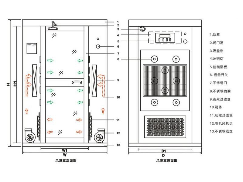 全不銹鋼風(fēng)淋室:這是一種采用國際先進(jìn)技術(shù)設(shè)計(jì)、經(jīng)精密數(shù)控設(shè)備生產(chǎn)制造的風(fēng)淋室,是一種通用性較強(qiáng)的局部凈化設(shè)備,安裝于潔凈室與非潔凈室之間的隔墻處,用于人員或物體進(jìn)入潔凈區(qū)時的吹淋除塵。使用后可有效和減少塵源進(jìn)入潔凈區(qū),使?jié)崈魠^(qū)保持正常的工作狀態(tài)。它廣泛適用于食品飲料、電子、醫(yī)藥衛(wèi)生等各種行業(yè)及科研領(lǐng)域。特點(diǎn):1、箱體采用優(yōu)良SUS304不銹鋼板經(jīng)進(jìn)口數(shù)控機(jī)床剪、折、焊接而成,確保設(shè)備表...
